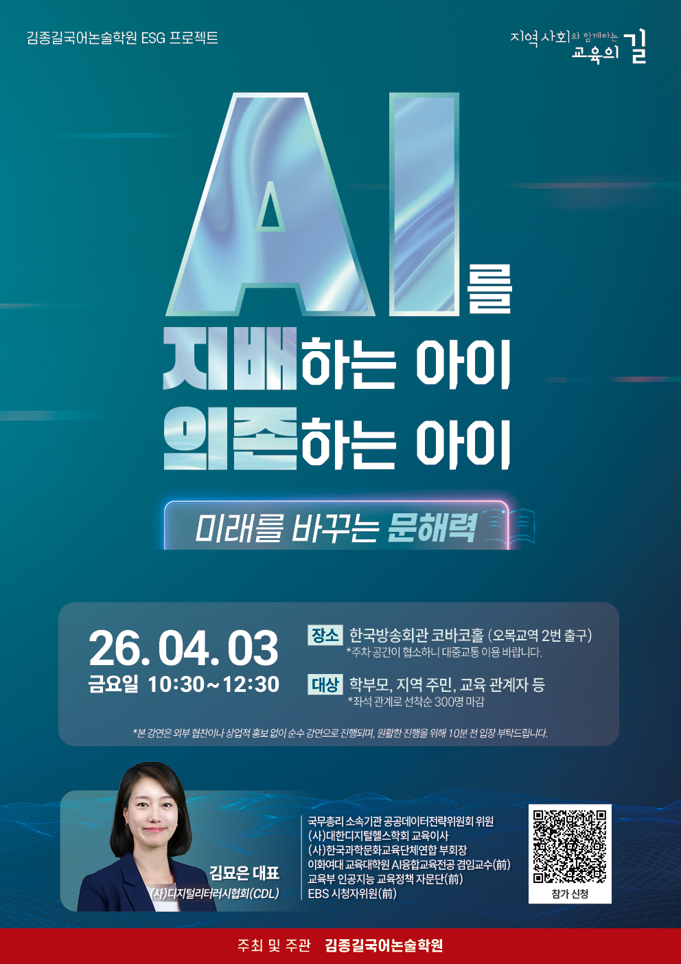 ▶ 대상: AI 시대 아이의 학습과 문해력에 관심 있는 학부모 및 지역 주민, 교육 관계자 등