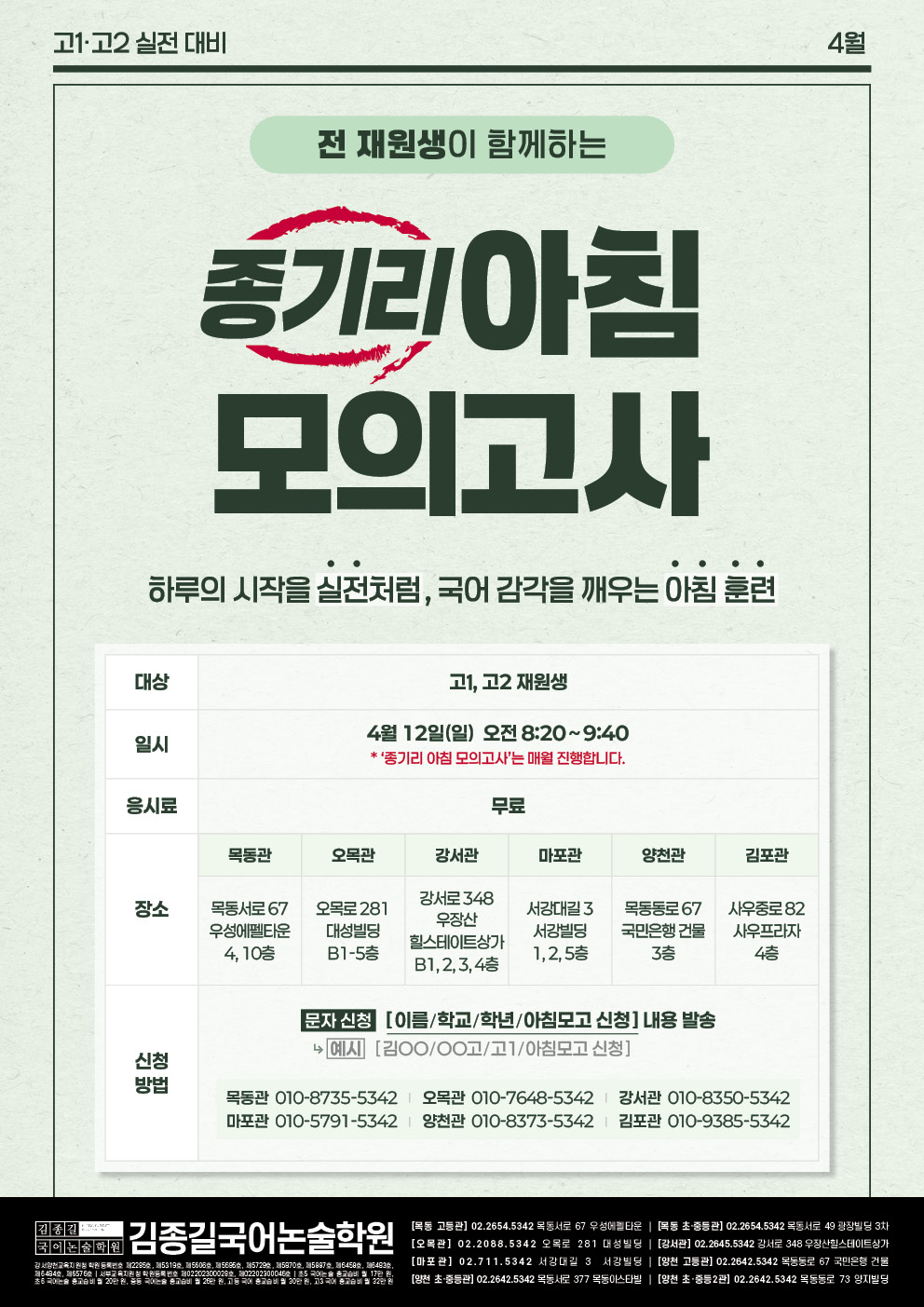 종기리 아침 모의고사가 매월 진행됩니다.