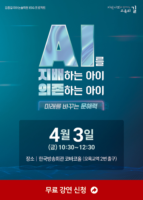 아이들이 AI에 의존하지 않고 스스로 생각하며 활용하도록 학습의 이정표를 제시합니다. 일시: 4월 3일(금) 10:30 장소: 한국방송회관 코바코홀