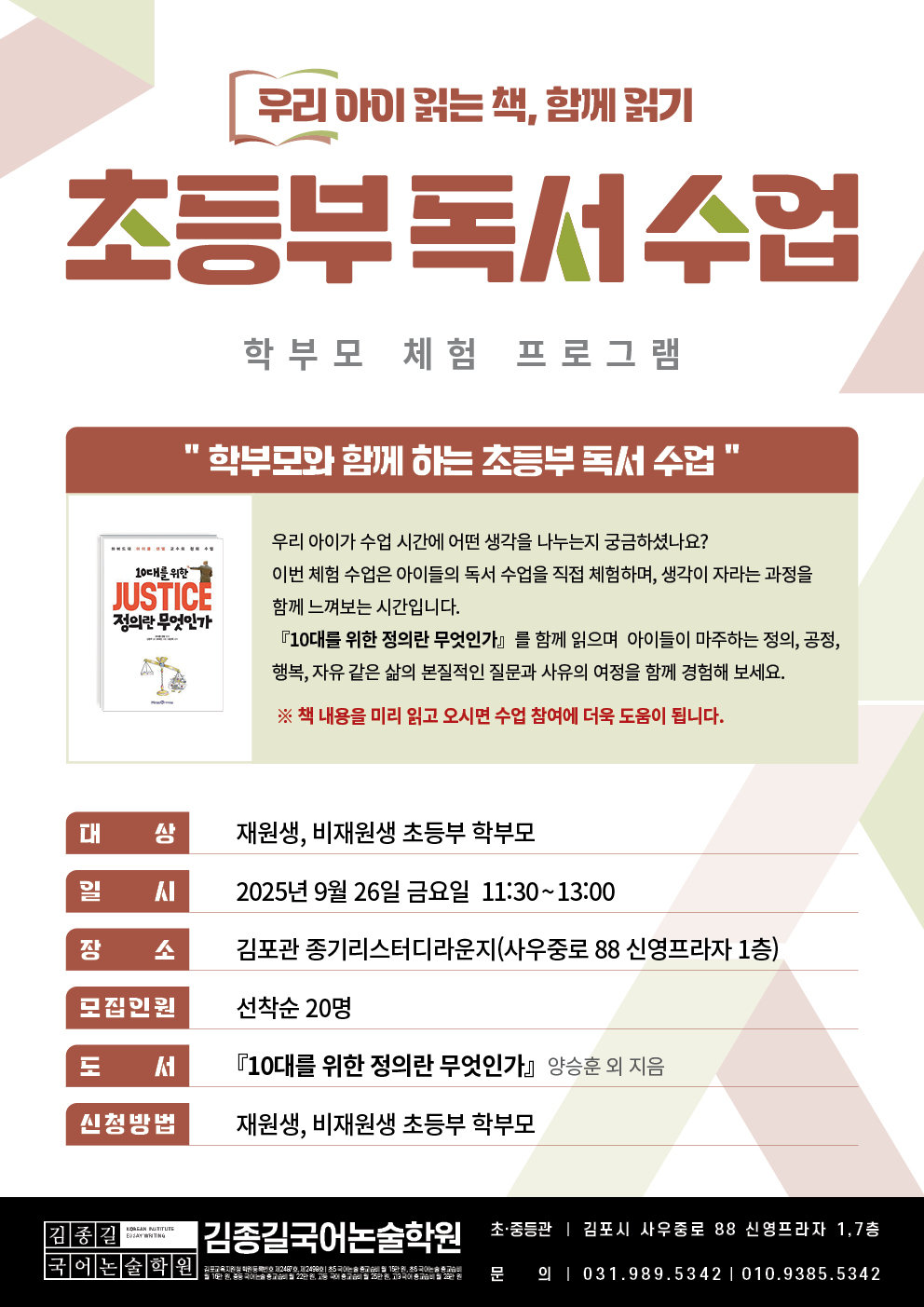[김포관] 초등부 학부모와 함께하는 '우리 아이 읽는 책, 함께 읽기'
