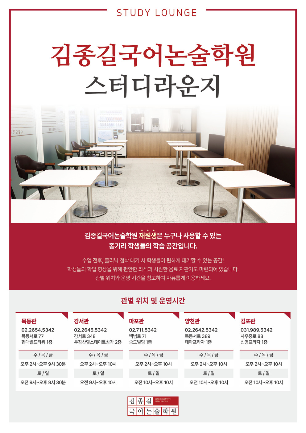 김종길국어논술학원 스터디라운지 소개