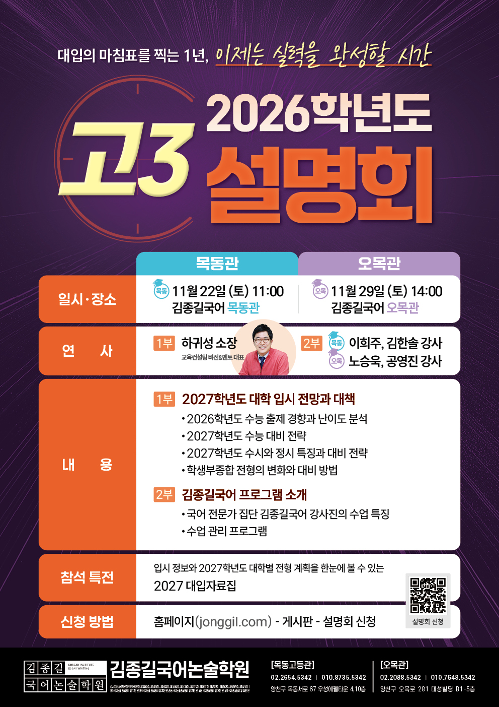 [목동관,오목관] 2026 고3 (현 고2) 설명회