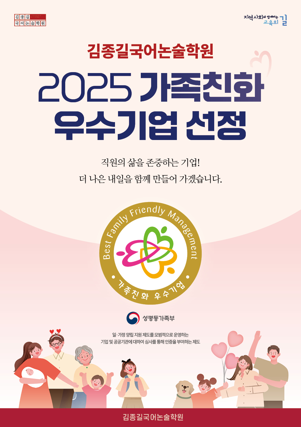 김종길국어논술학원이 성평등가족부(구 여성가족부)에서 주관하는