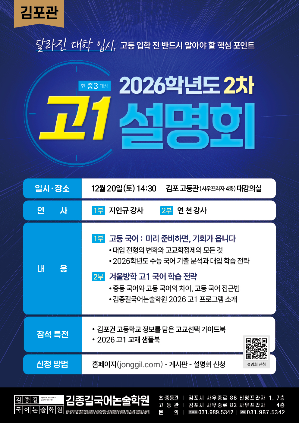 [김포관] 2026 고1(현 중3) 2차 설명회