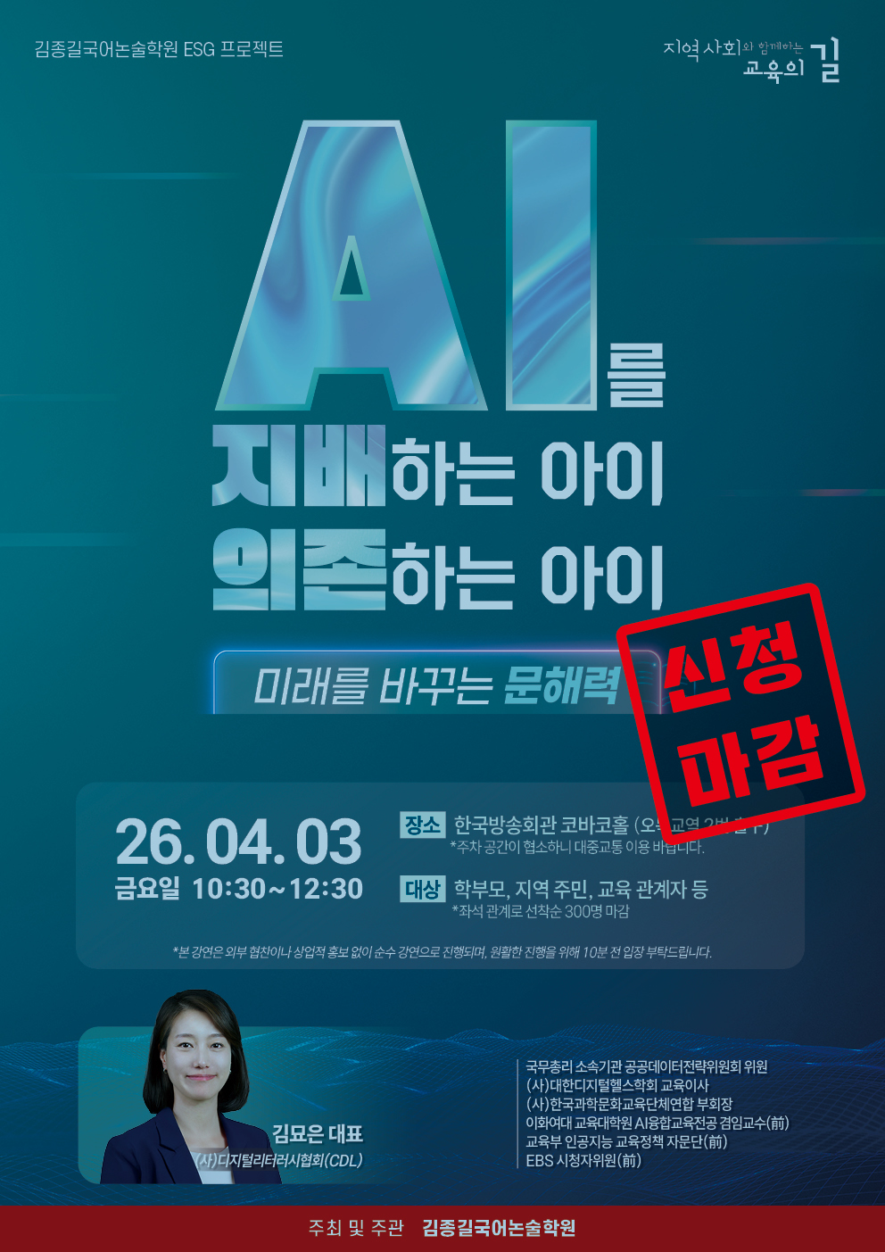 ▶ 대상: AI 시대 아이의 학습과 문해력에 관심 있는 학부모 및 지역 주민, 교육 관계자 등