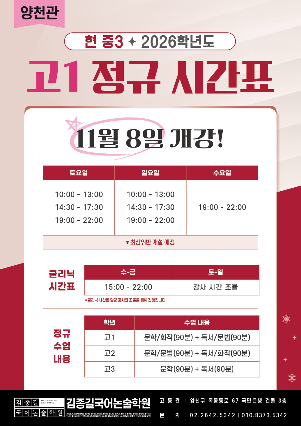 [양천관] 2026학년도 고1 정규 시간표