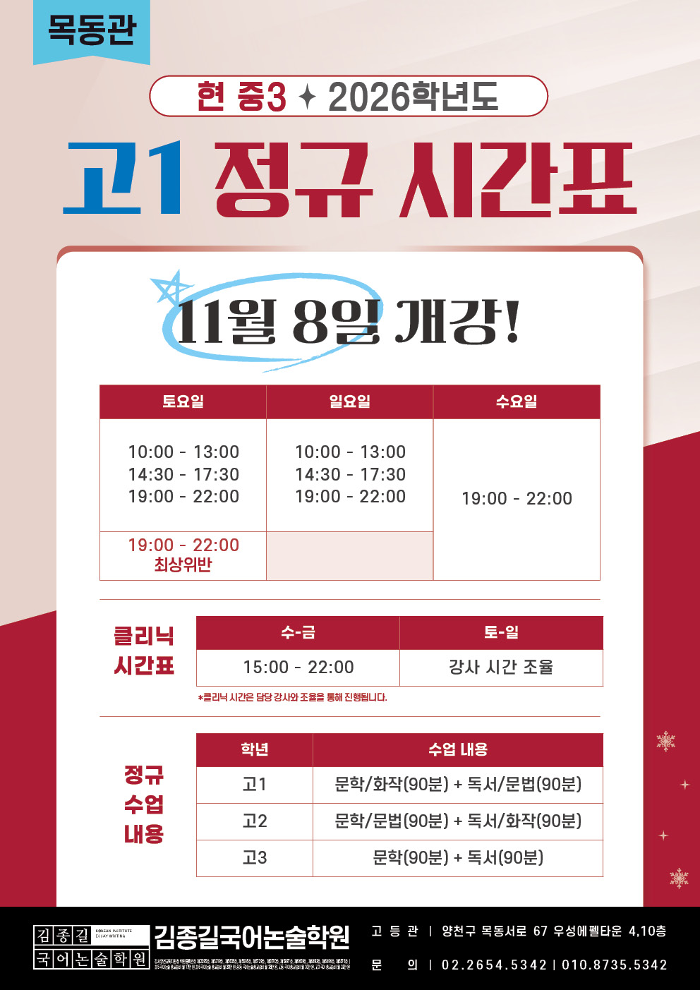[목동관] 2026학년도 고1 정규 시간표