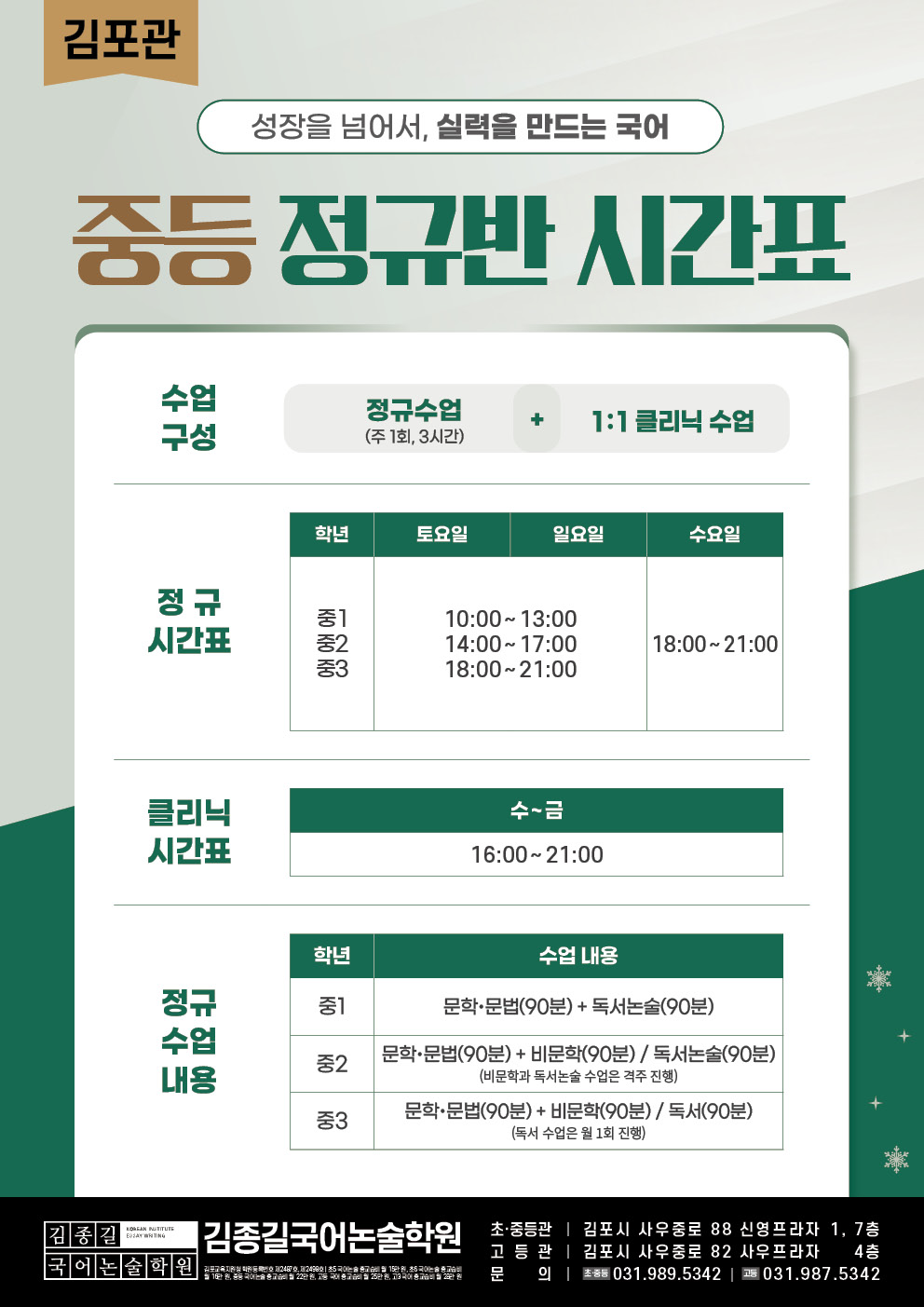 [김포관] 2026 정규반 시간표