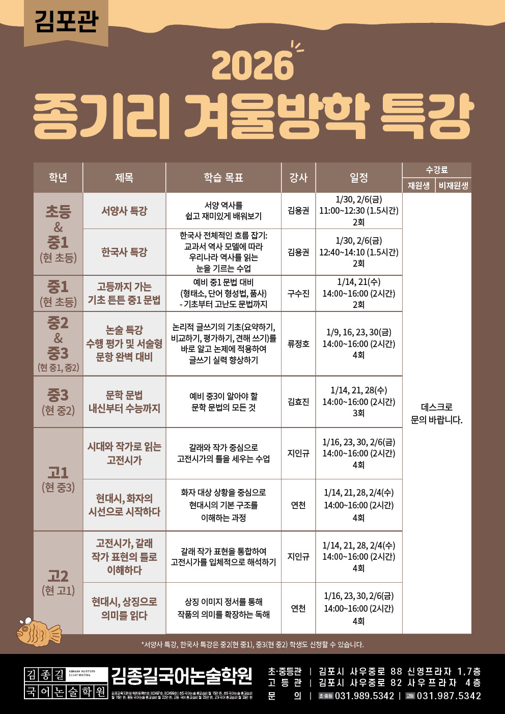 [김포관] 2026 겨울방학 특강 안내